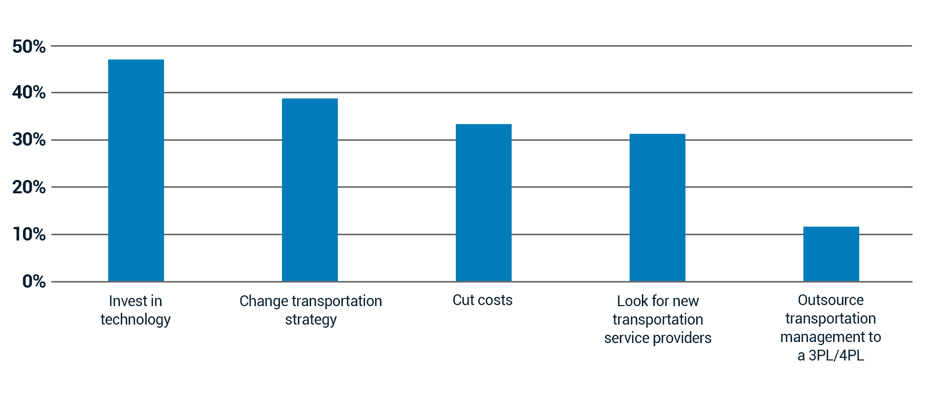 The Benchmark Survey shows that compliance and carrier monitoring have become central to transportation management. New capability areas such as insurance verification and identity validation reflect how organizations are working to reduce fraud and strengthen control within their carrier networks.