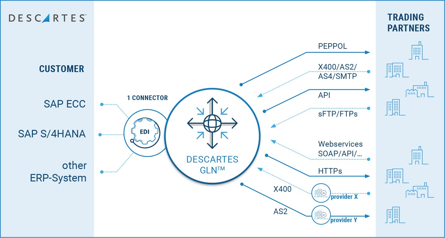 Das Descartes Global Logistics Network ist ein Ökosystem von Softwarelösungen für den Supply-Chain-Markt. Descartes nimmt in diesem Bereich eine führende Position ein und steht häufig an der Spitze integrierter Lösungen für Ihre Logistikanforderungen. Es verbindet Hunderttausende Logistik- und Transport-, Fertigungs-, Vertriebs-, Einzelhandels-, Regierungs- und E-Commerce-Unternehmen in über 160 Ländern. Verlassen Sie sich auf das Expertenteam von Descartes für eine problemlose integrierte EDI-Lösung.