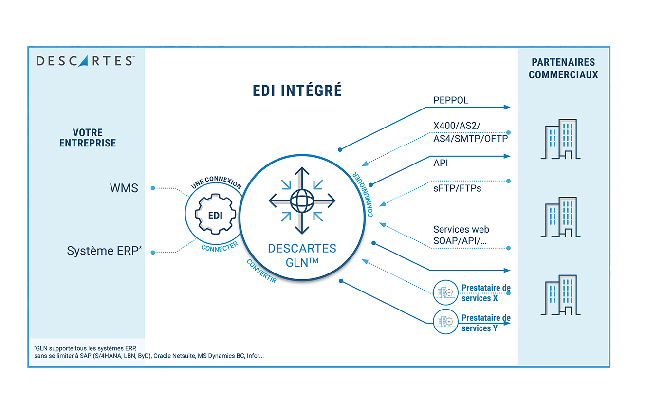 Descartes a plus de 40 ans d'expérience et est un leader du secteur dans la prestation de solutions EDI. Nous pouvons vous conseiller sur l'utilisation de l'EDI dans vos processus. Des délais de mise en œuvre courts, une externalisation complète et une structure de coûts transparente vous permettent de savoir clairement ce que vous pouvez attendre de nous.