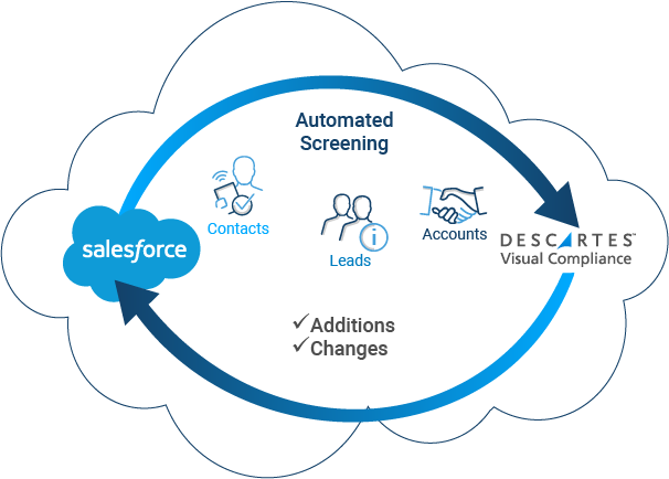 Applications such as Salesforce have simplified the way organizations conduct business. Through our integration options, organizations that use Salesforce can have the peace of mind that they're not doing business with restricted and denied parties, and sanctioned and embargoed countries.
