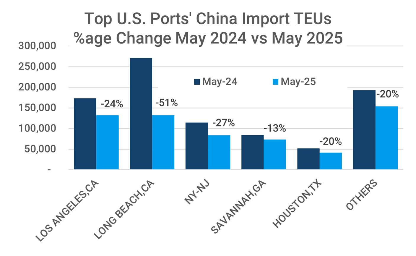 Figure 7 Year-over-Year Change in Import Volumes from China at Top Ports YTD 2025