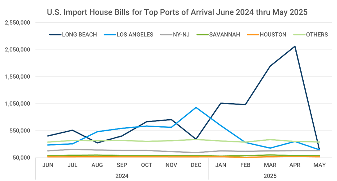 Figure 12 Monthly Number of Shipments Arriving at Top U.S. Ports June 2024 through May 2025