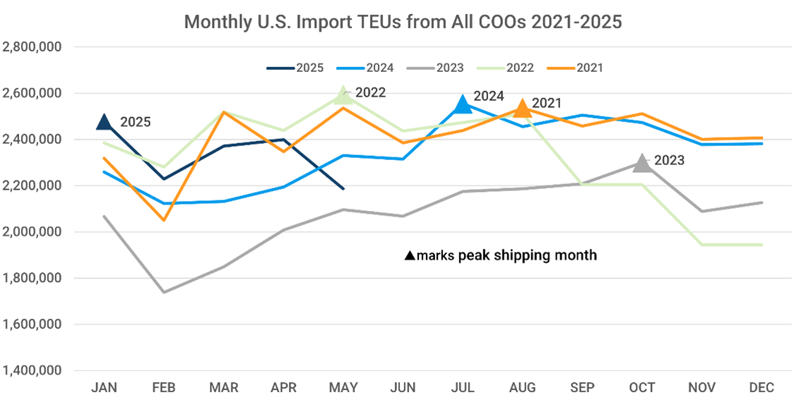 Figure 3 Peak Shipping Seasons in U.S. Imports 2021 through May 2025