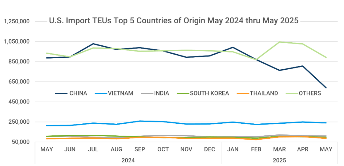 Figure 8 U.S. Import Shipments from the Top Countries of Origin over 13 Months Ending May 2025