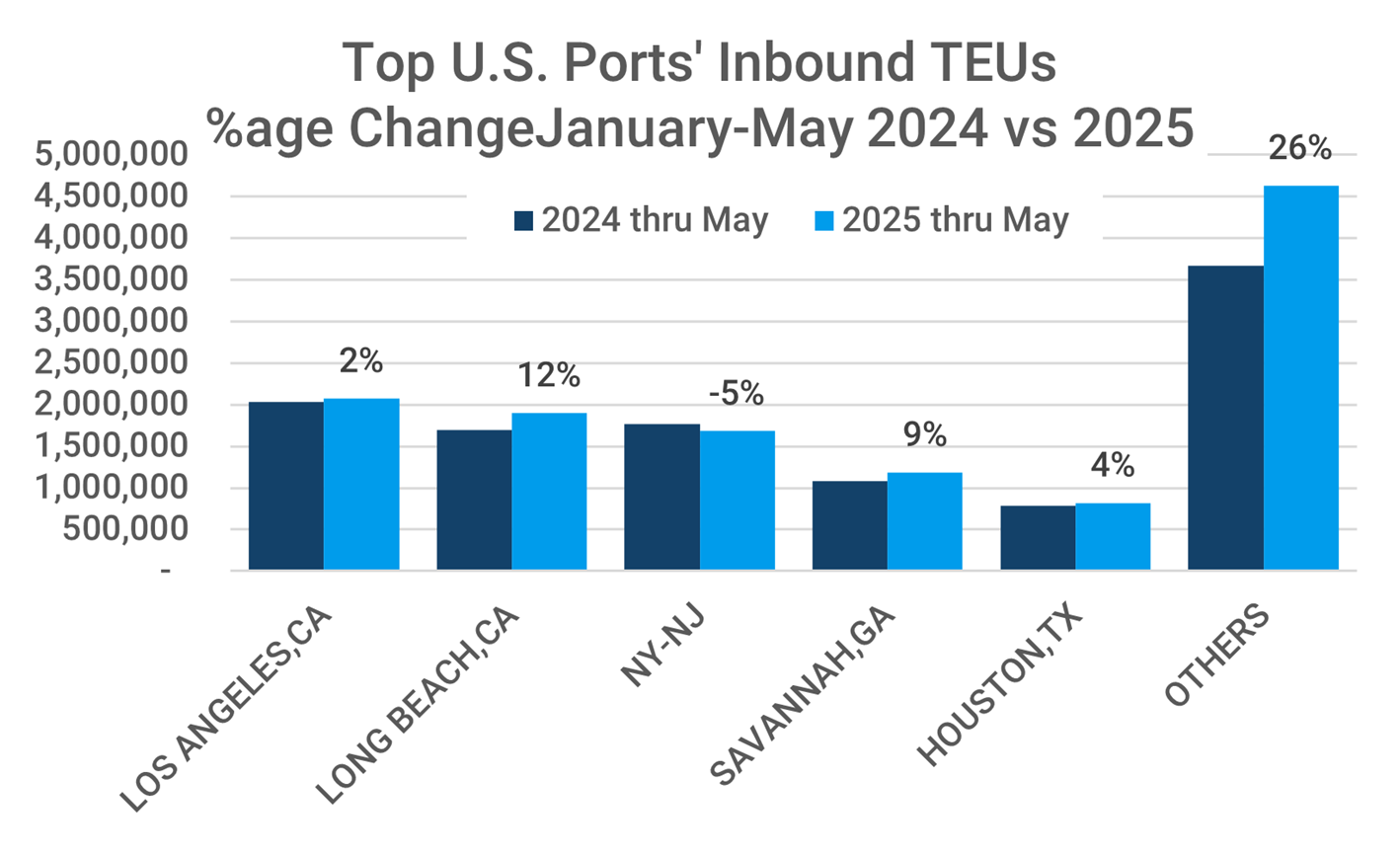 Figure 5 Year-over-Year Change in Import Volumes at Top Ports YDT2025