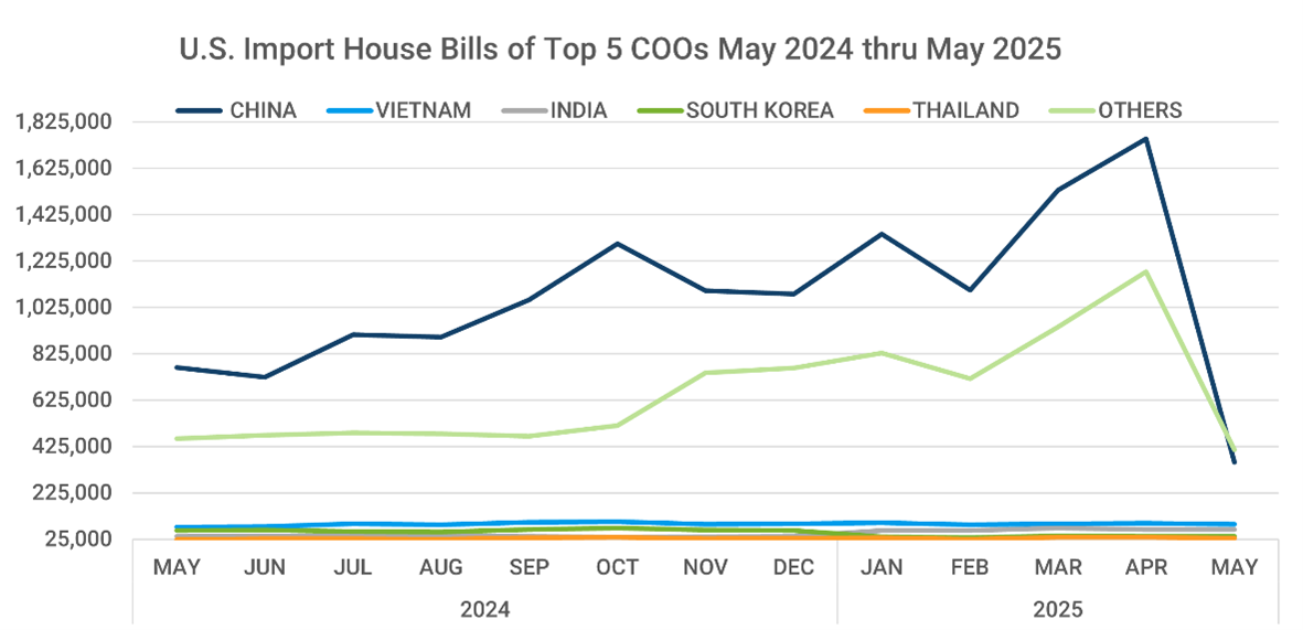 Figure 4 Top Countries of Origin Monthly Import Volumes May 2024 through May 2025