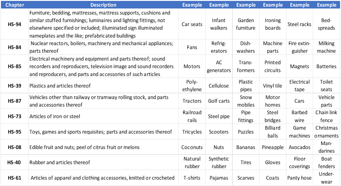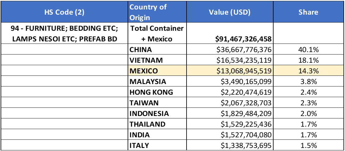 Goods Category HS-94 (Furniture, Bedding, etc.)