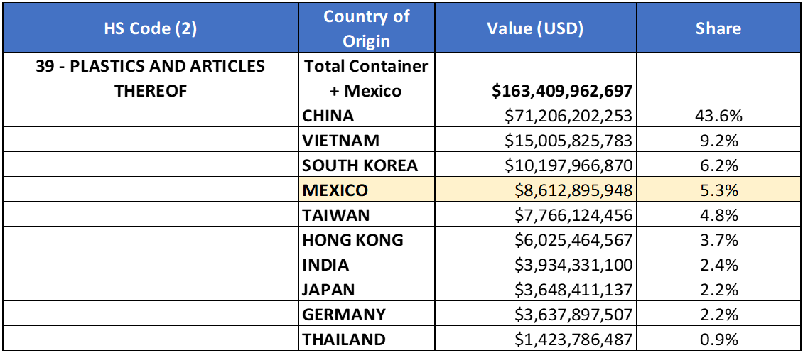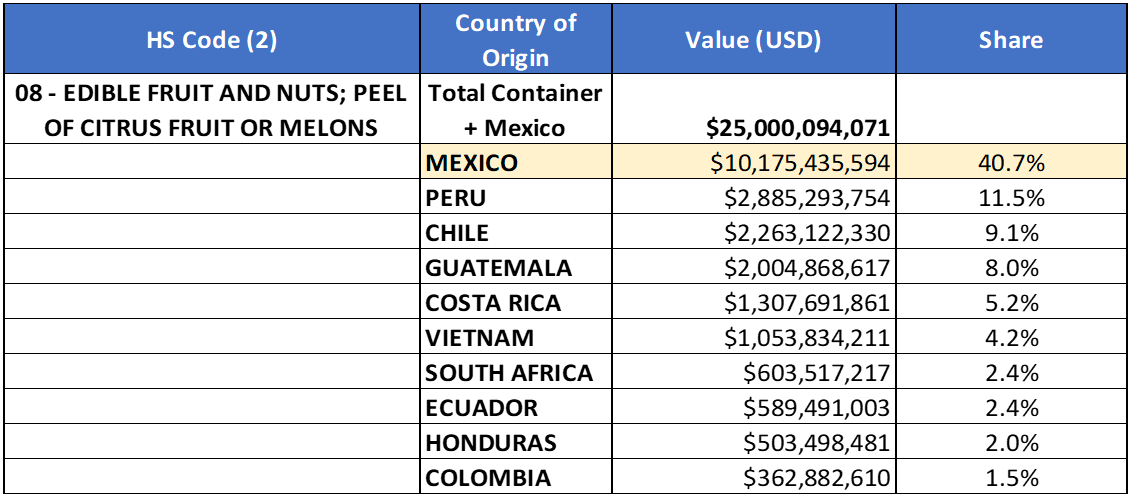 Top 10 Commodity Categories and Mexico’s Place as a Top Country of Origin