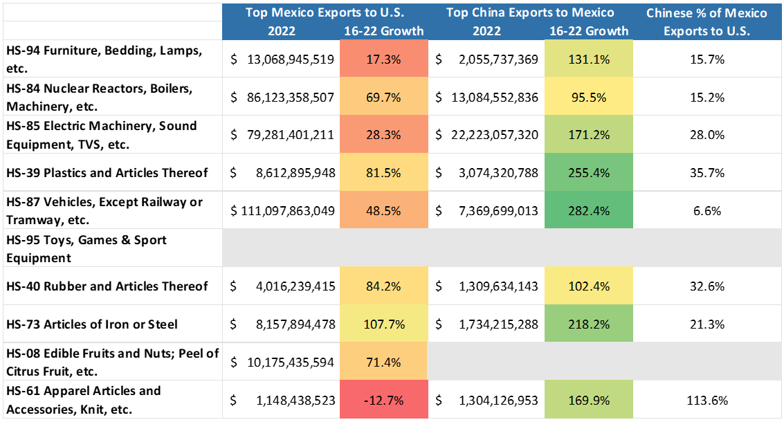 - Most of Mexico’s U.S. export growth occurred in 2021 and 2022