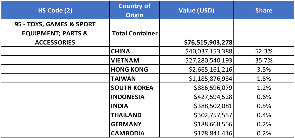 Goods category HS-95 (Toys, Games & Sport Equipment, etc.)