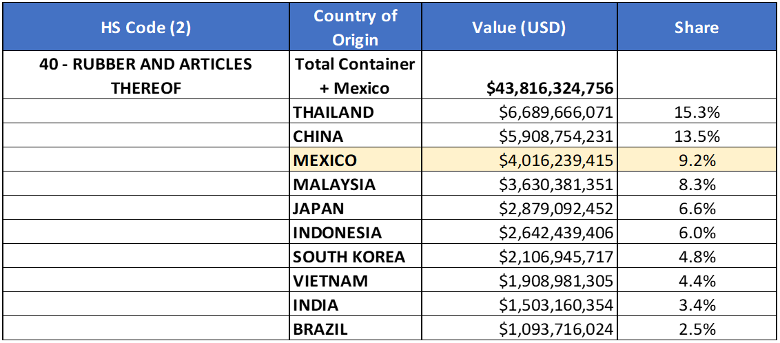 Goods category HS-40 (Rubber and Articles Thereof)