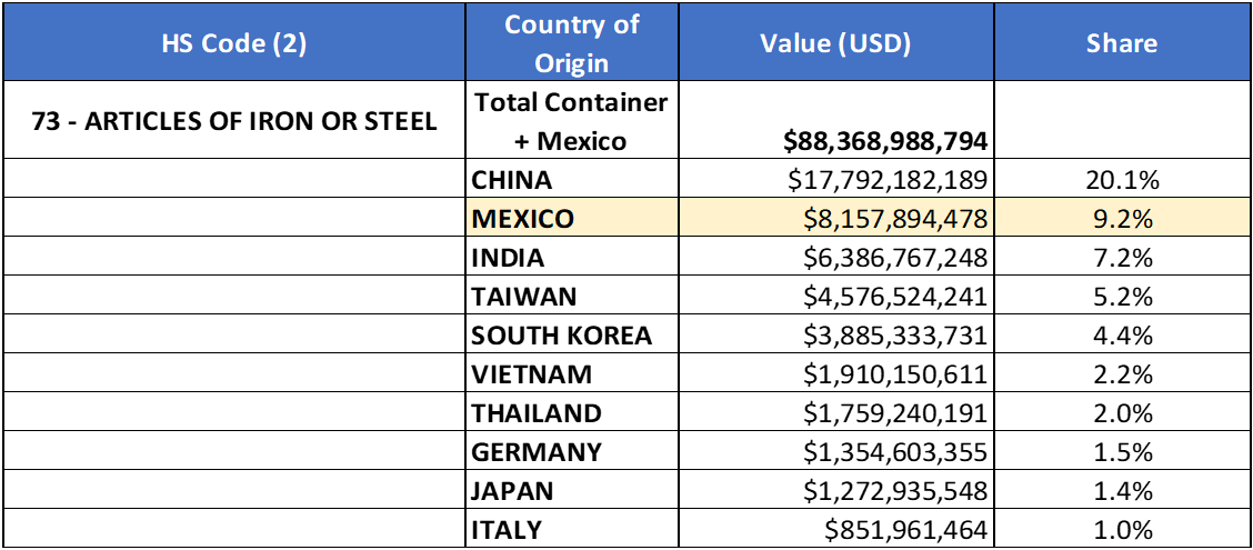 Goods category HS-73 (Articles of Iron or Steel)