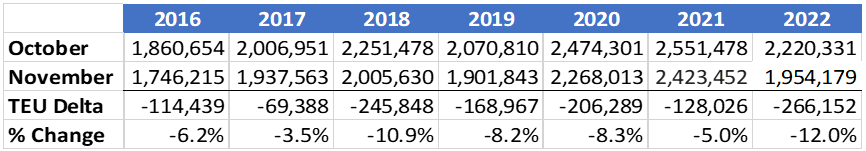 Figure 2: October to November U.S. Container Import Volume Comparison