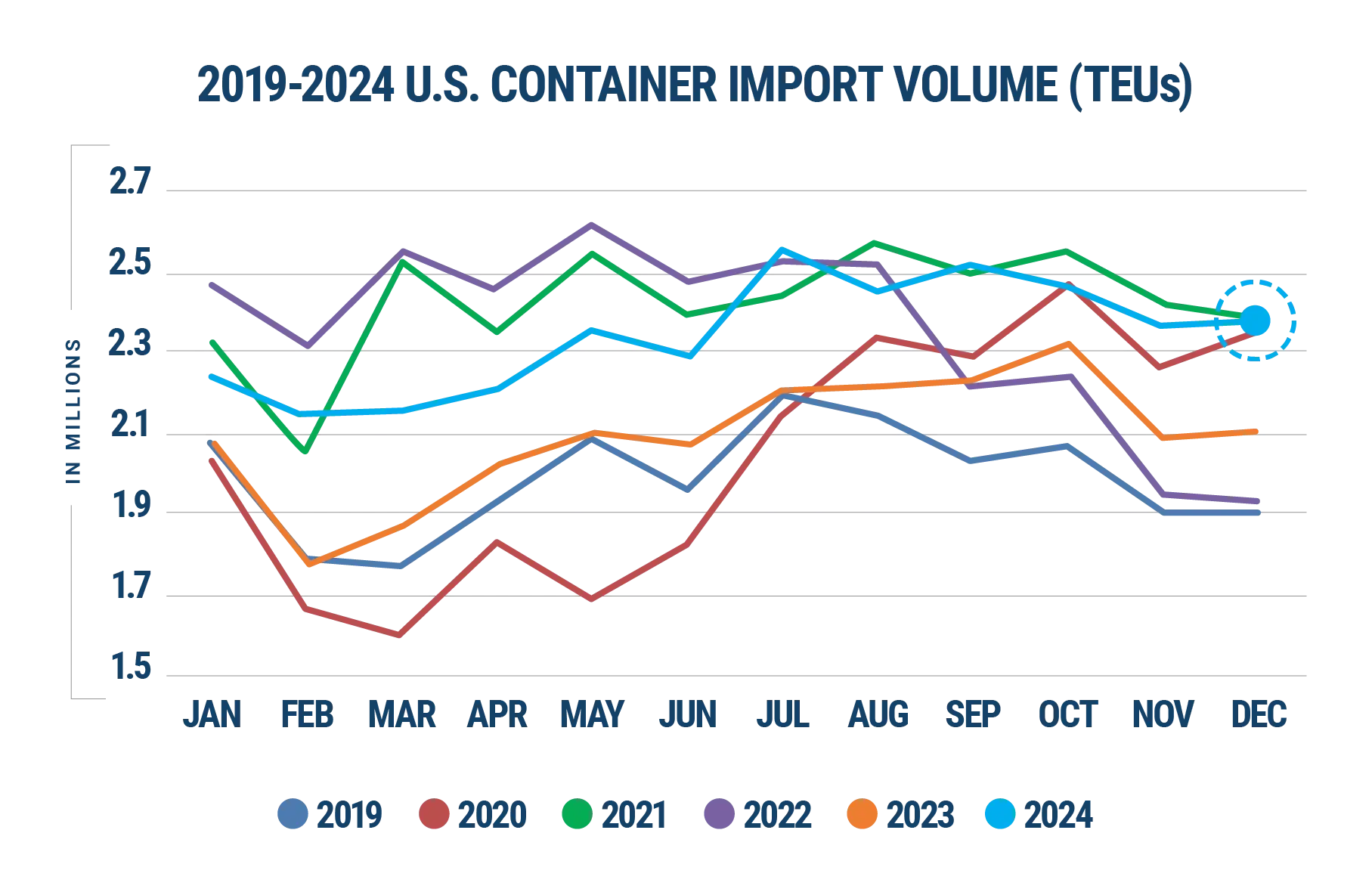 Strong December 2024 U.S. container import volumes close exceptional year.