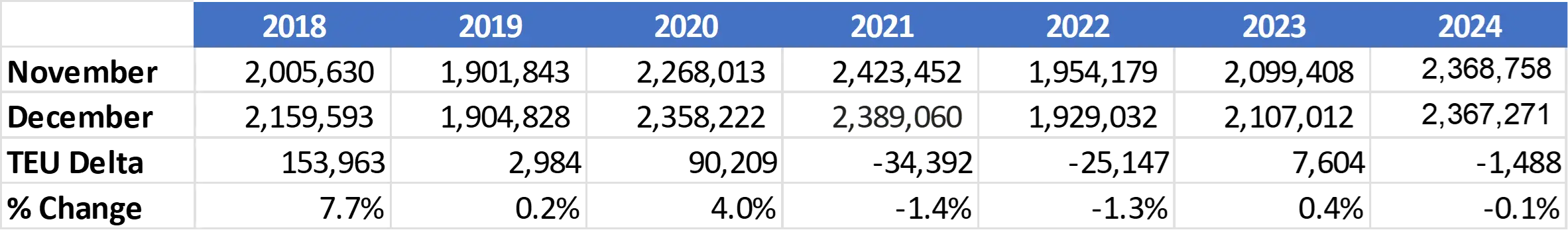 Figure 2: November to December U.S. Container Import Volume Comparison