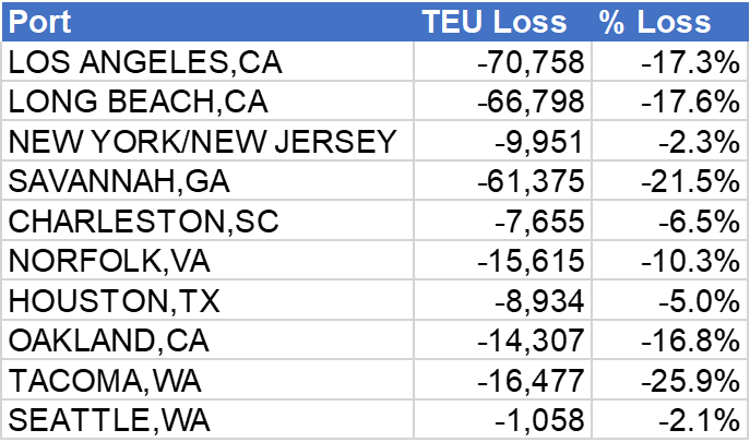 “This is the first month that U.S. container import volumes are seeing the effects of market headwinds, but we haven’t yet seen a similar reduction in port waiting times, which would help improve global supply chain performance (see Figure 2),” said Chris Jones, EVP Industry & Services at Descartes. “The decline in Chinese imports was the greatest driver of the overall decrease in U.S. imports and was felt the most on West Coast ports as most East and Gulf Ports continued operating at higher overall volumes.”