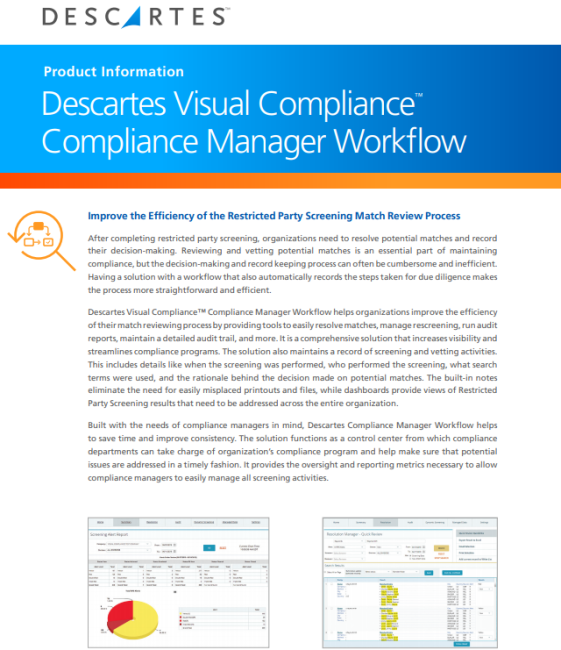 How our denied party screening workflow solution can help improve the efficiency of an organization's compliance program