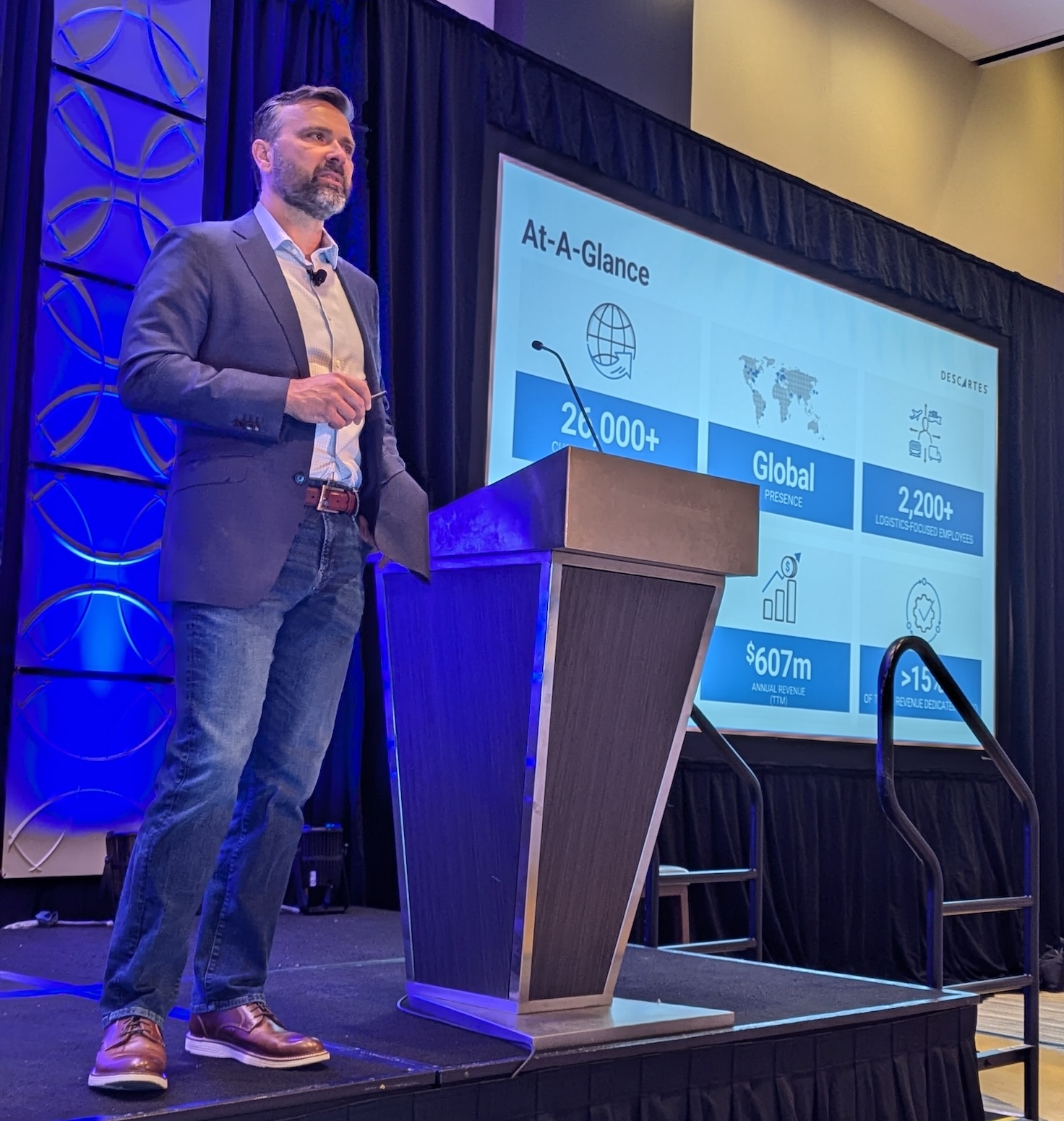 Over 500 customers and partners gathered in Chicago for the event, with close to 250 attendees joining the Routing, Mobile, and Telematics (RMT) forum. There, they were greeted by Ken Wood, Executive VP of Product Management at Descartes. He discussed the current state of the business, highlighting Descartes' ongoing investments in solutions, resources, and recent acquisitions, all aimed at empowering customers to compete effectively now and into the future.