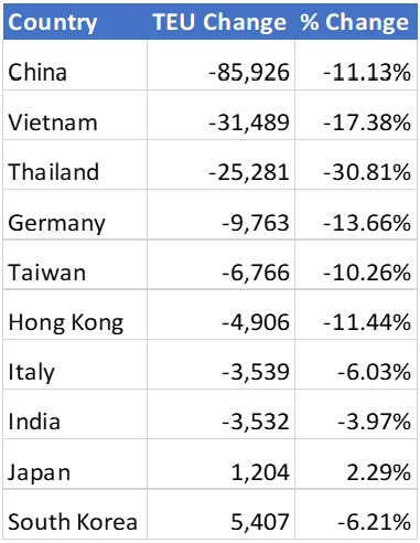 Figure 4: October to November Comparison of U.S. Import Volumes from Top 10 Countries of Origin