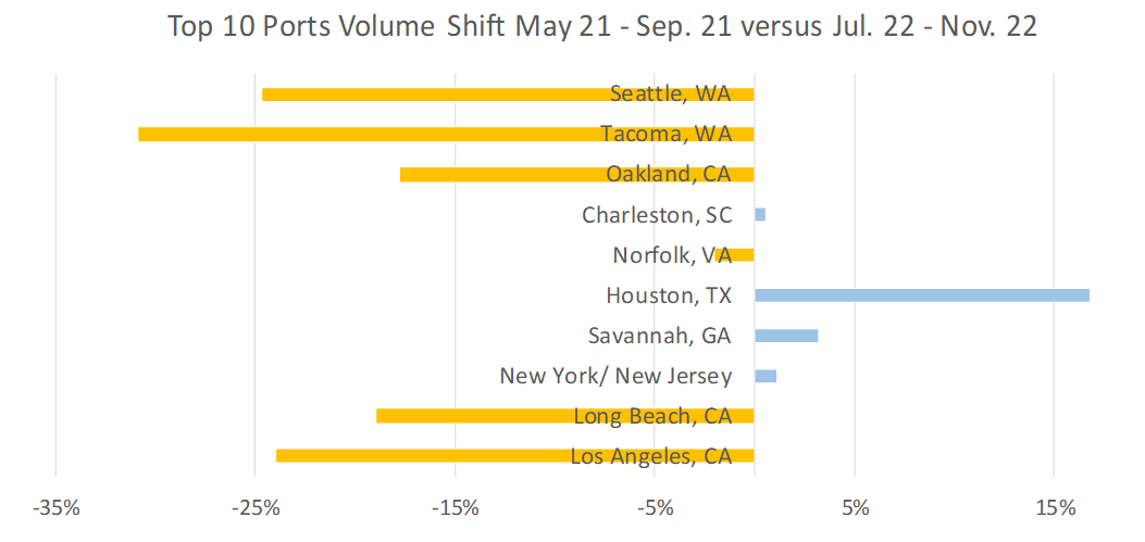 Figure 3: October to November Comparison of Import Volumes at Top 10 U.S. Ports