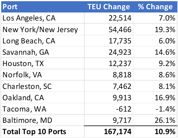 Figure 3: March to April Comparison of Import Volumes at Top 10 U.S. Ports