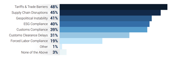 Descartes studie visar att 48 % av beslutsfattare inom logistik och Supply Chain ser ökade tullavgifter och handelshinder som en av de största utmaningarna just nu. Rapporten Supply Chain Intelligence Report 2024: Escalating Challenges for Global Supply Chain Leaders, lyfter fram hur detta tillsammans med störningar i leveranskedjan (45 %) och geopolitisk instabilitet (41 %), är de faktorer som påverkar företag idag.